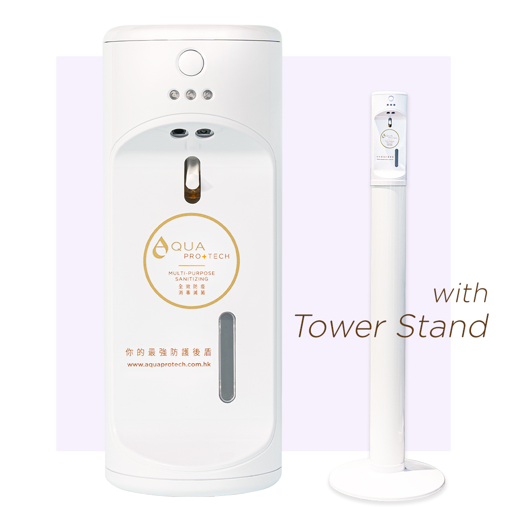 只需三顆AA電池驅動,使用方便,掛牆、座枱及座地均可,適合家居及企業使用。消毒滅菌機內置噴霧瓶,可儲存300毫升AQUA PRO+TECH 全效防疫消毒滅菌液。